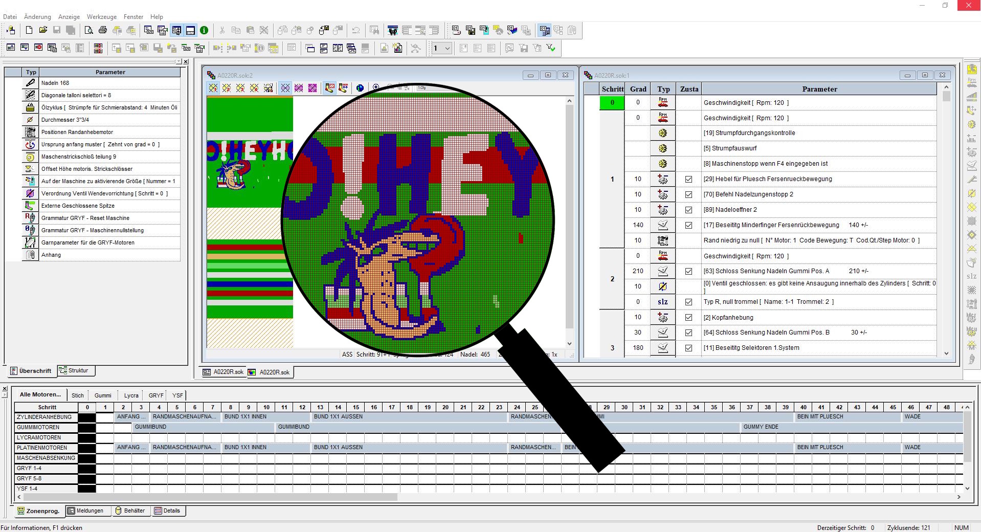 Damit eure Designs gestrickt, gestickt oder gewebt werden können, müssen aus euren Motiven Daten erstellt werden, die die Strick-, Stick- oder Webmaschinen verarbeiten können. Pro Motiv und pro Verfahren ist so ein maschinenlesbares File nötig. Natürlich können die Dateien für 1:1-Nachbestellungen wieder verwendet werden, ohne neue Kosten.