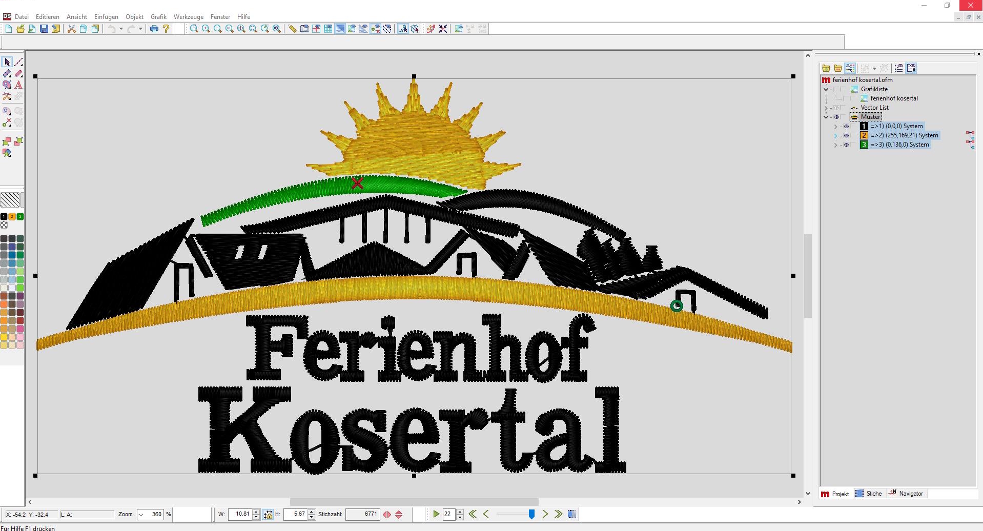 Stickkarte: So sieht die digitale Simulation eines gestickten Logos aus.